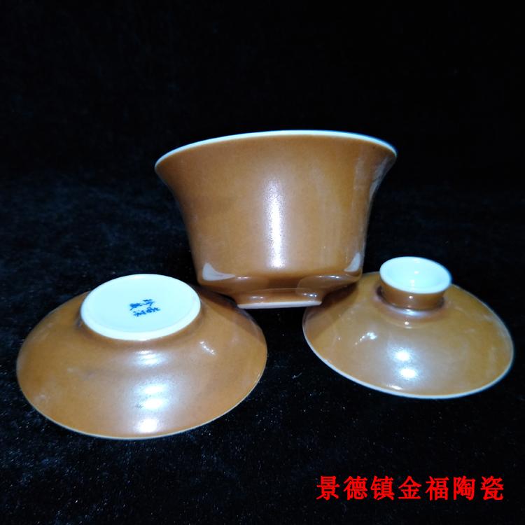 Jingdezhen Cultural Revolution Porcelain Factory goods ceramics purple gold glaze blue and white hand-painted goldfish cover bowl tea fish algae picture three cai cover cup