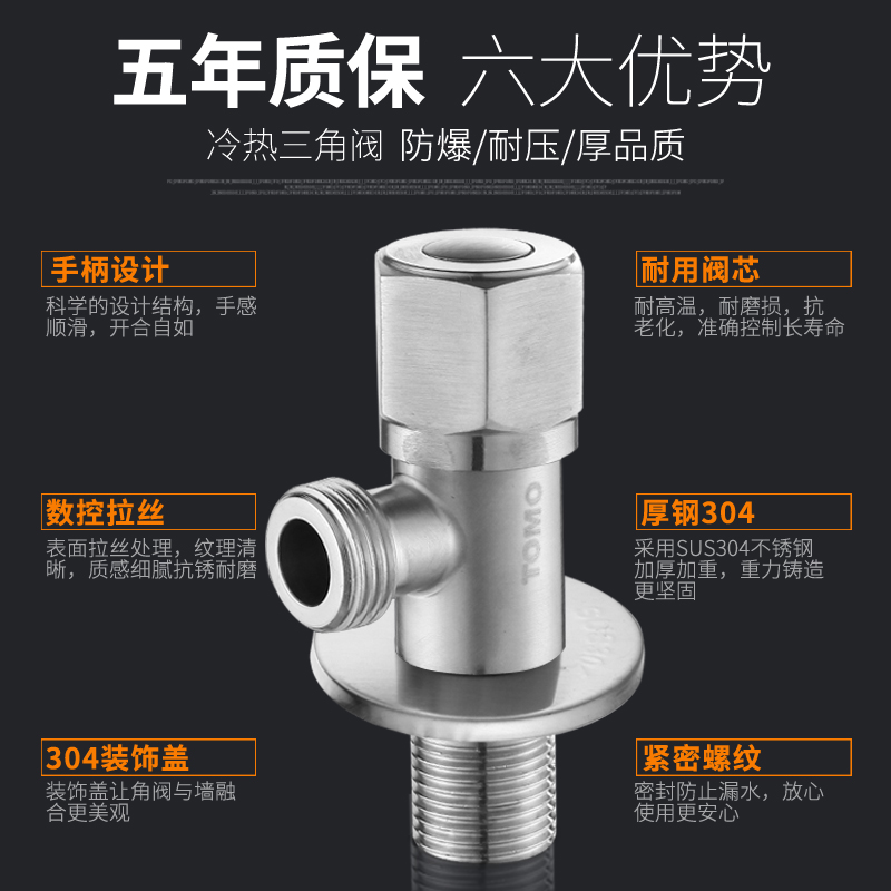 304 stainless steel angle valve thickened lengthened hot and cold universal explosion protection full copper triangular valve water stop valve 4 Unleaded