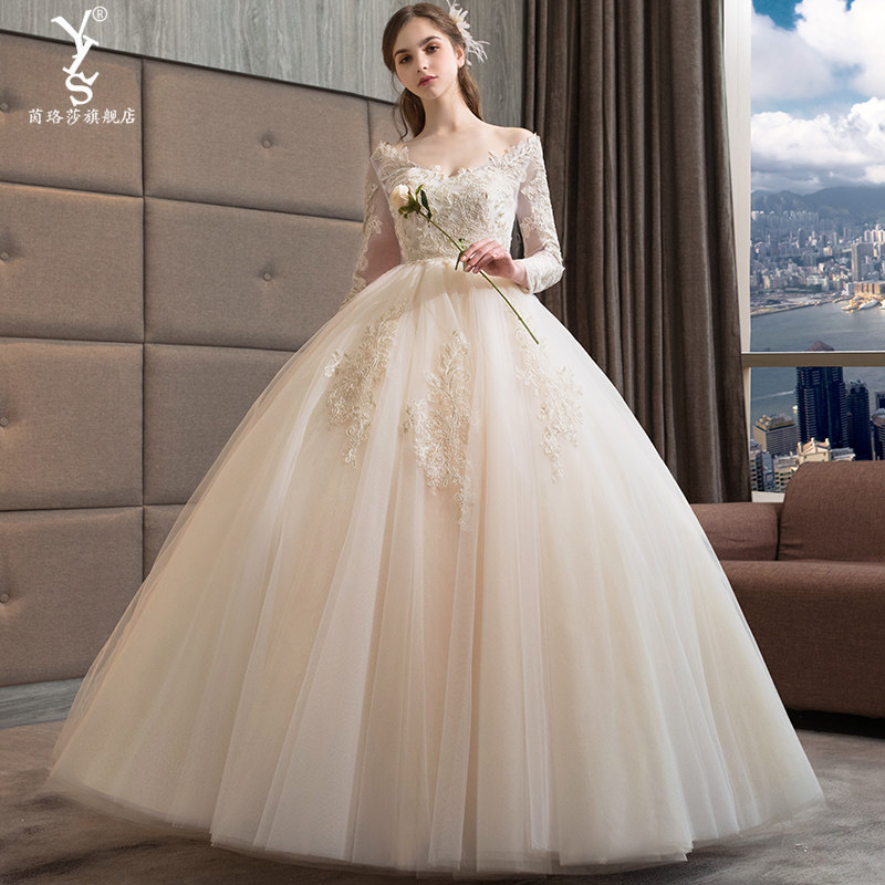 Light wedding dress 2021 new bridal temperament Long sleeves Pregnant Woman Little Taller size Trailing Palace Wind Out of the house