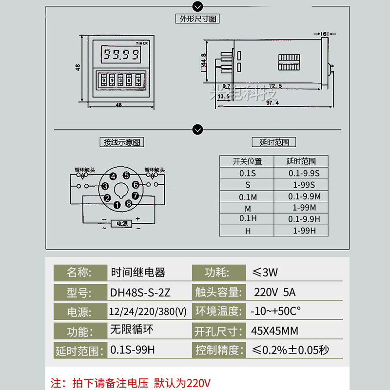 Digital display time-lapse relay DH48S-S cycle control time delay 220V24V380V high quality accuracy