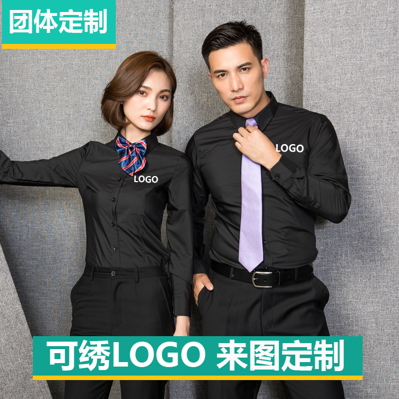 Male and female co-workers to work in white shirt with long sleeves, teacher bank 4S shop working clothes shirt custom-made embroidered