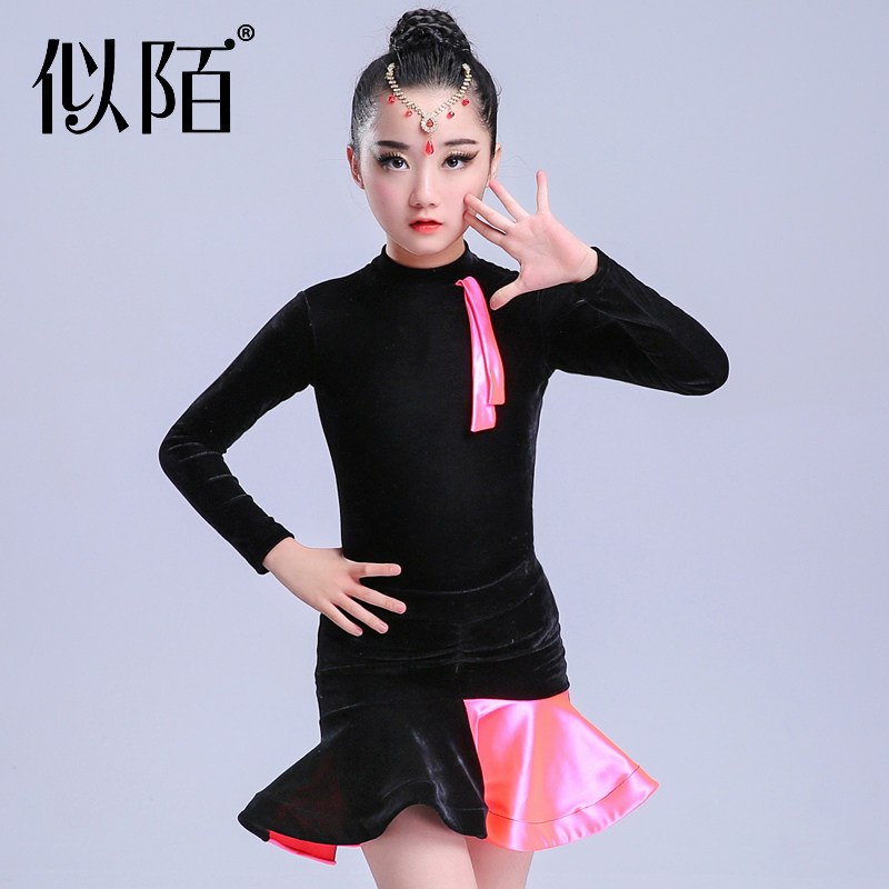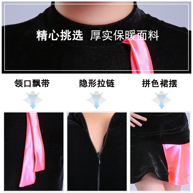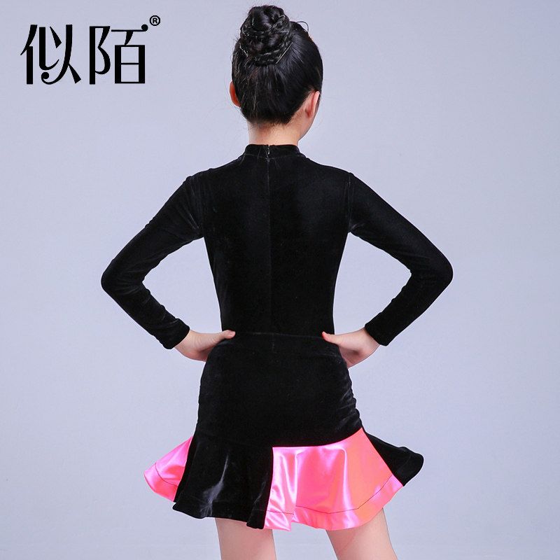 Spring and autumn Professional Latin dance Costume Women Long Sleeve Practice children Two-style competition Cavelvet dance Velvet Thickening