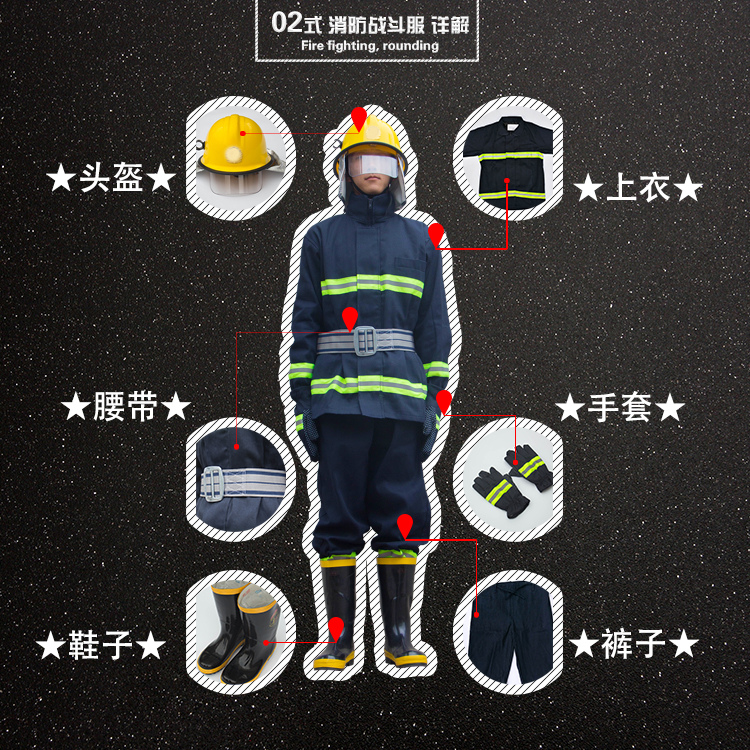 Fire suit set 02 type five-piece set fire extinguishing protective suit full set combat suit flame retardant suit miniature fire station inspection