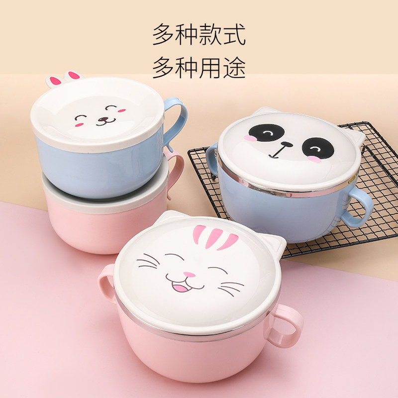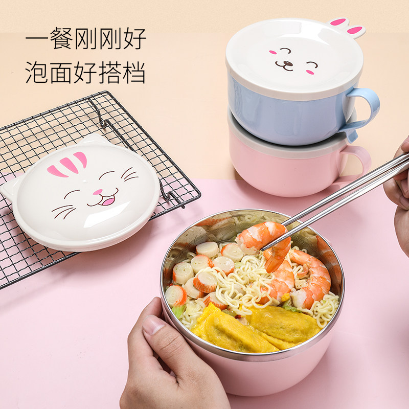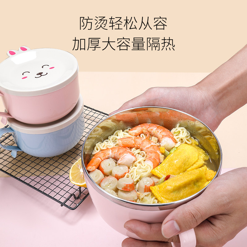 Stainless steel instant noodle bowl with lid Large soup bowl Household student lunch box with handle anti-scalding seal large capacity