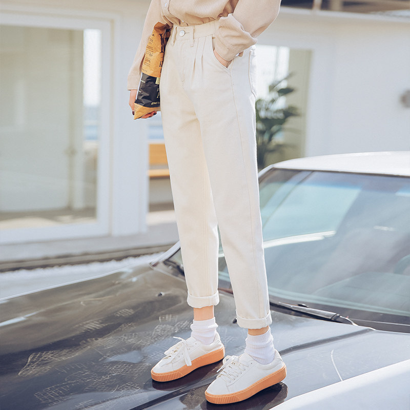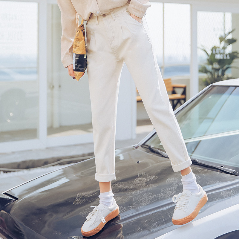 Wide-legged pants women's white high-waisted casual pants workwear thin autumn and winter Harunxia thin 2021 New