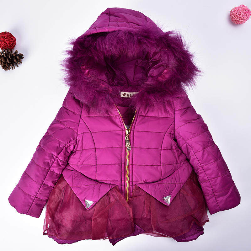 Clear Barn Green Berry Girl Lian Hat Mesh Yarn Splicing Cotton Coat Thickened Cotton Padded Jacket Warm Warm Cotton Clothing