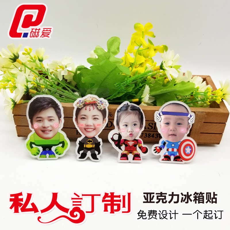 5cm square acrylic refrigerator sticker 5cm height big head photo 8cm height full body photo 8cm height double combination photo Family combination Family combination Two Tang monk teacher and apprentice 4 feelings
