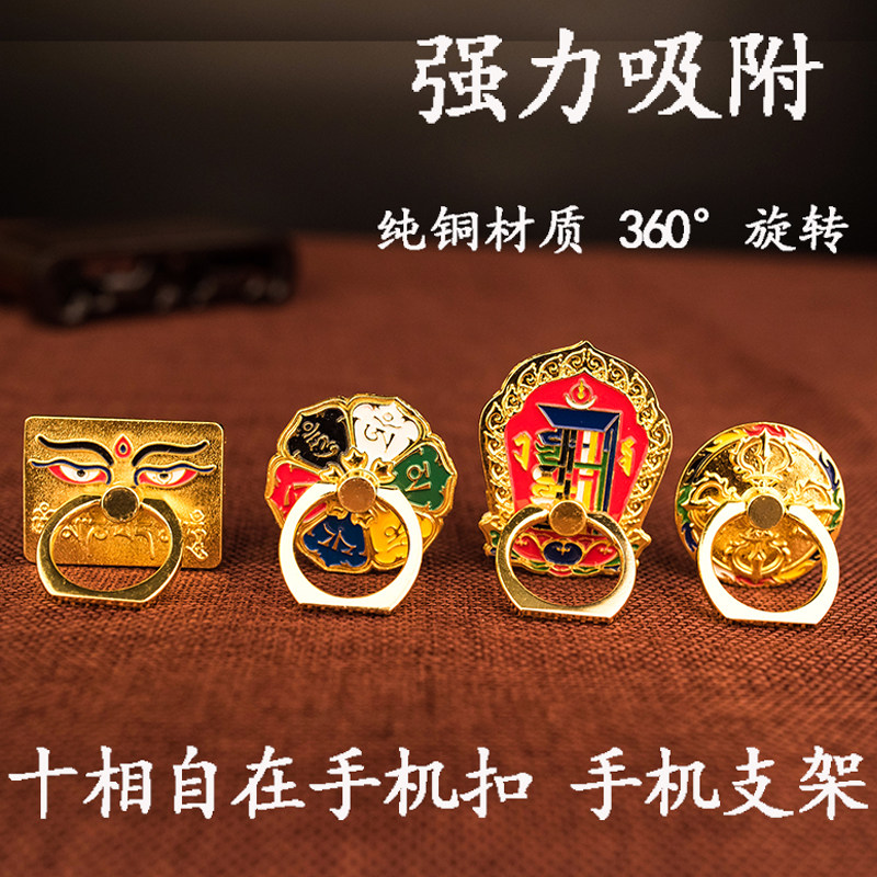 Eight Auspicious Alloy Buddha phone frame Six words true mobile phone ring buckle ten at ease with diamond pestle mobile phone ring buckle