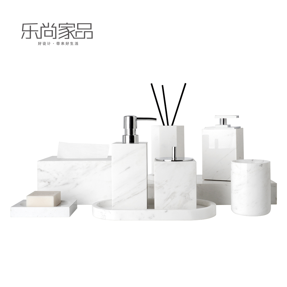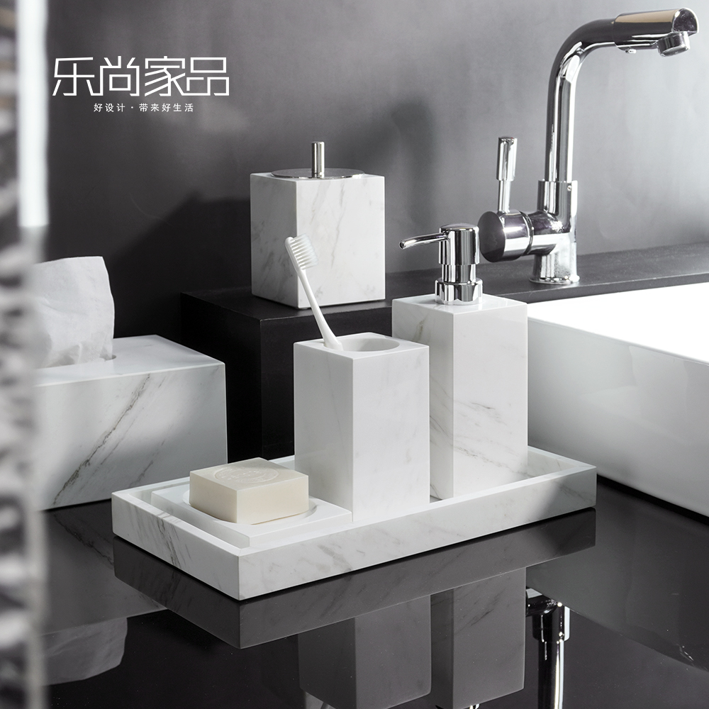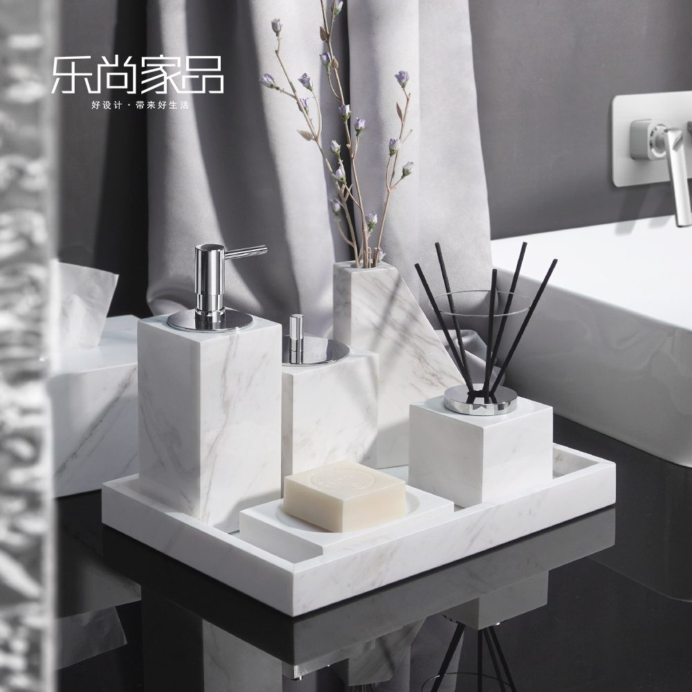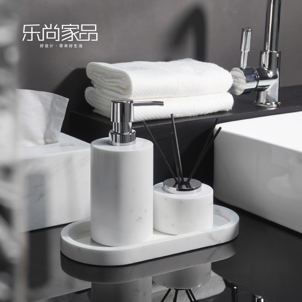 Jazz white marble bathroom toiletry kit light luxury hand sanitizer bottle tissue box tray combination model house accessories