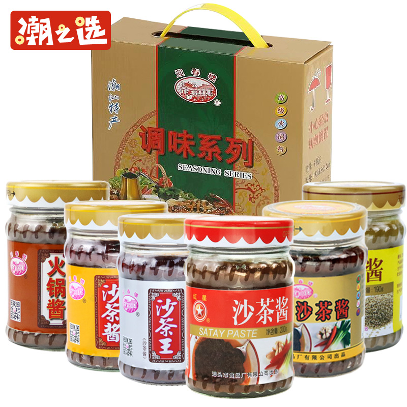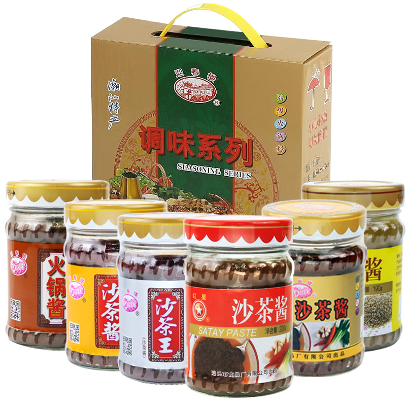 Welcome Spring Building Sand Tea Sauce Hot Pot dip Beef Meatballs Sticky Sauce Hot Pot 1200g Chaoshan seasoning 6 bottles of gift box Composition