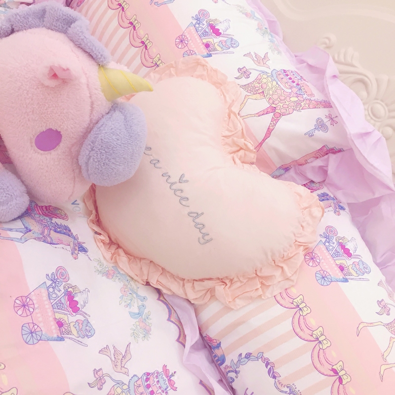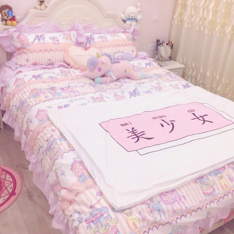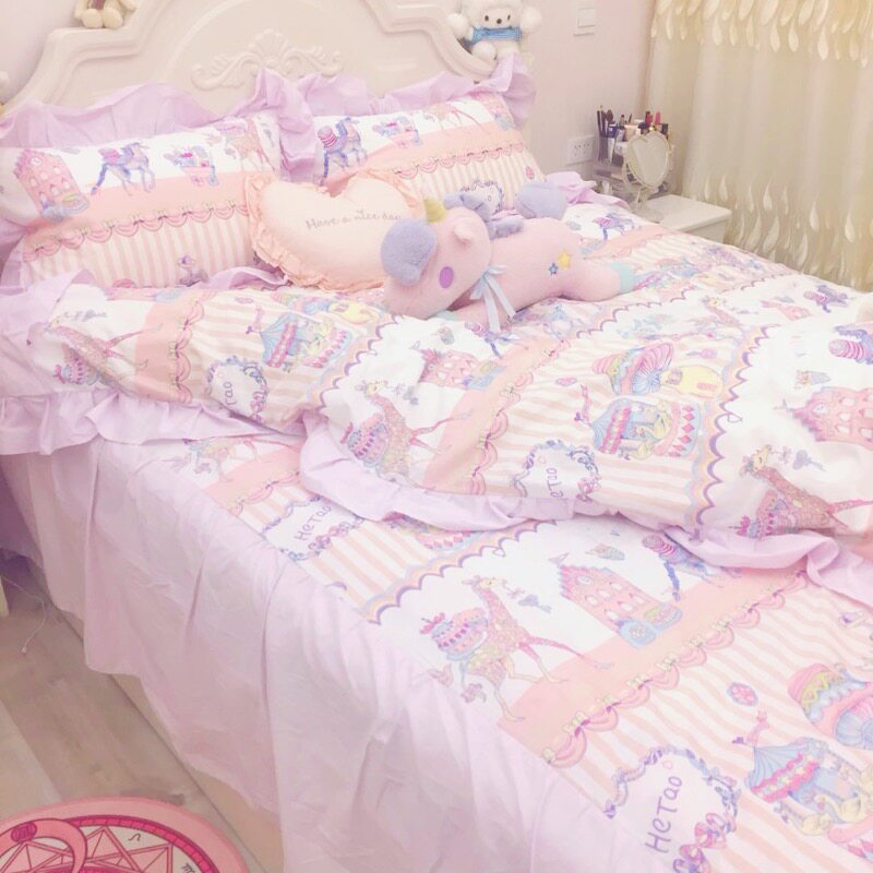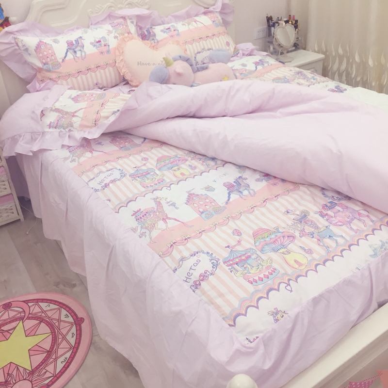 (Limited return)ins wind cotton pink purple lace circus bed skirt Girl heart four-piece set plus cotton