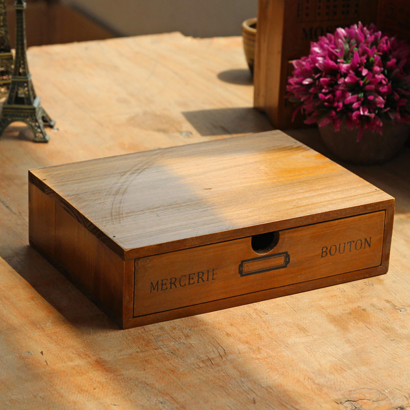 ZKKA retro made of old wooden containing box containing box drawer-type makeup case multifunction desk surface finishing box