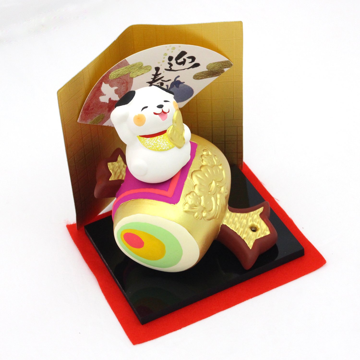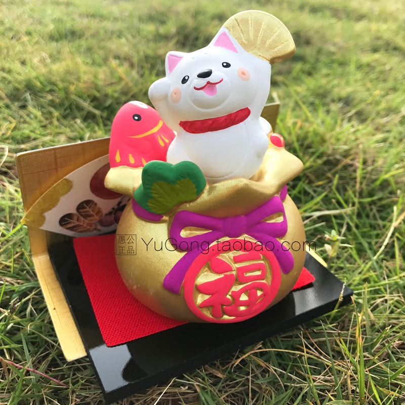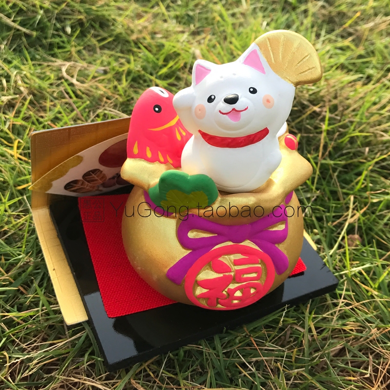 Japanese Seto burn money bag Puppy pooch Puppy dog zodiac Ceramic Pendulum to open up for luck and pray for New Year's gifts