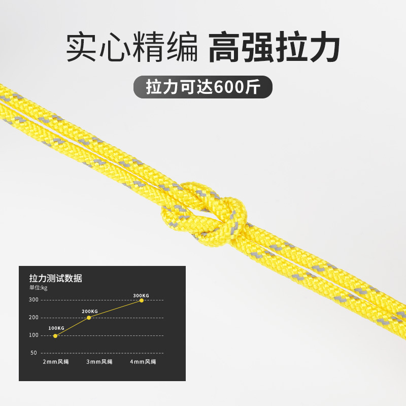 Outdoor canopy wind rope 4mm reflective canopy pull rope fixed rope tent wind rope ground nail rope send stop buckle