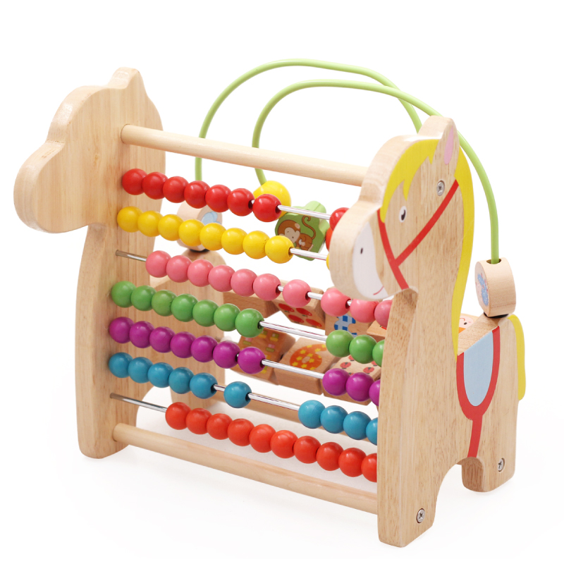 Early education educational abacus wooden calculation frame abacus Trojan horse around beads teaching aids boys and girls baby toys 2-3-4 years old