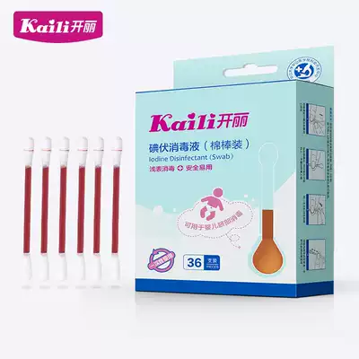 Kaili Baby Iodine volt Disinfectant (cotton swabs) Umbilical cord disinfection 36 packs of iodine volt cotton swabs for one-time use