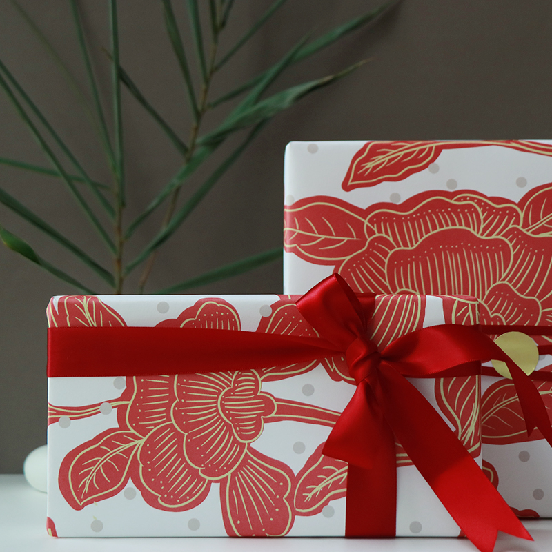 Silk with multiple selfies without cutting open wrapping paper 1 sheet of wide red silk with 2 m wrapping paper 1 sheet of fine red silk with 2 m wrapping paper 1 sheet of wrapping paper 2 pieces of wrapping paper