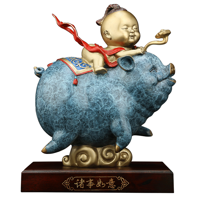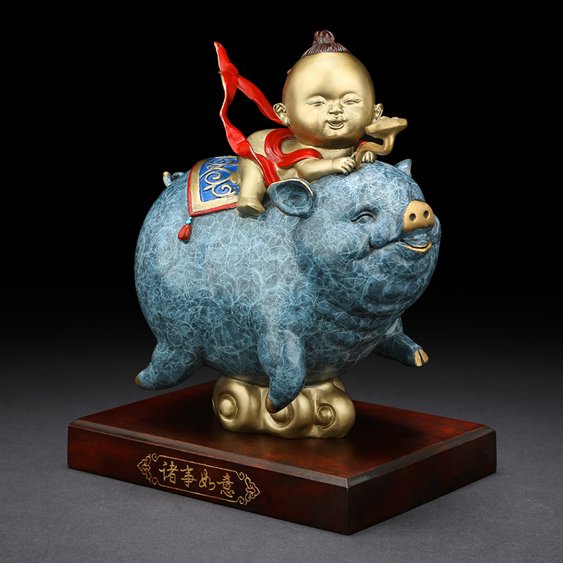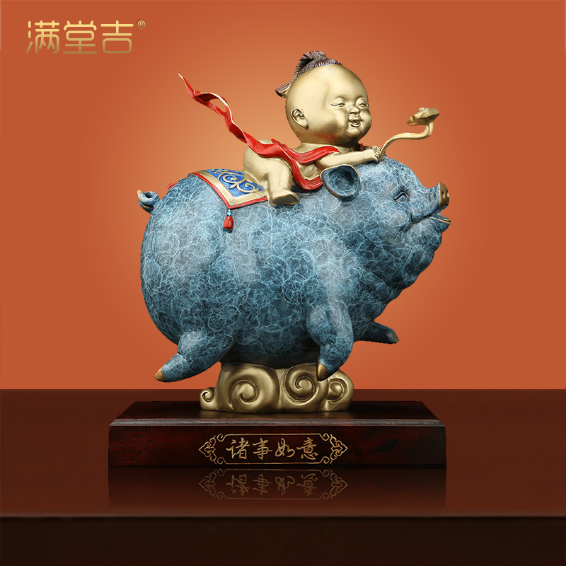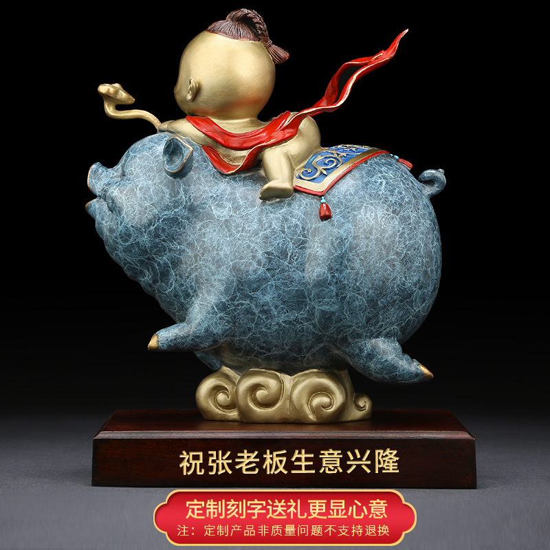 "All The Things Ruyi" Merchants Bronze Pig Pendulum Pieces Full Copper Creative Zodiac Pig Craft Gifts Swing Accessories Wine Cabinet Desk Furnishing