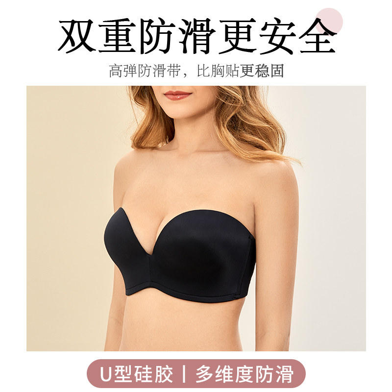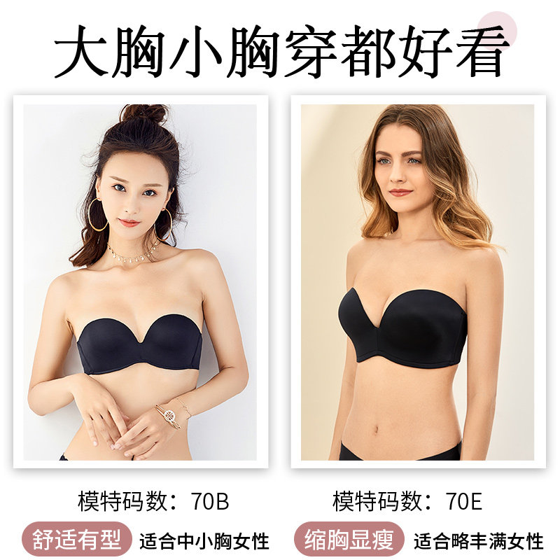 Lan Qin strapless underwear big chest small size bra invisible wedding bra gathered non-slip thin chest stickers women
