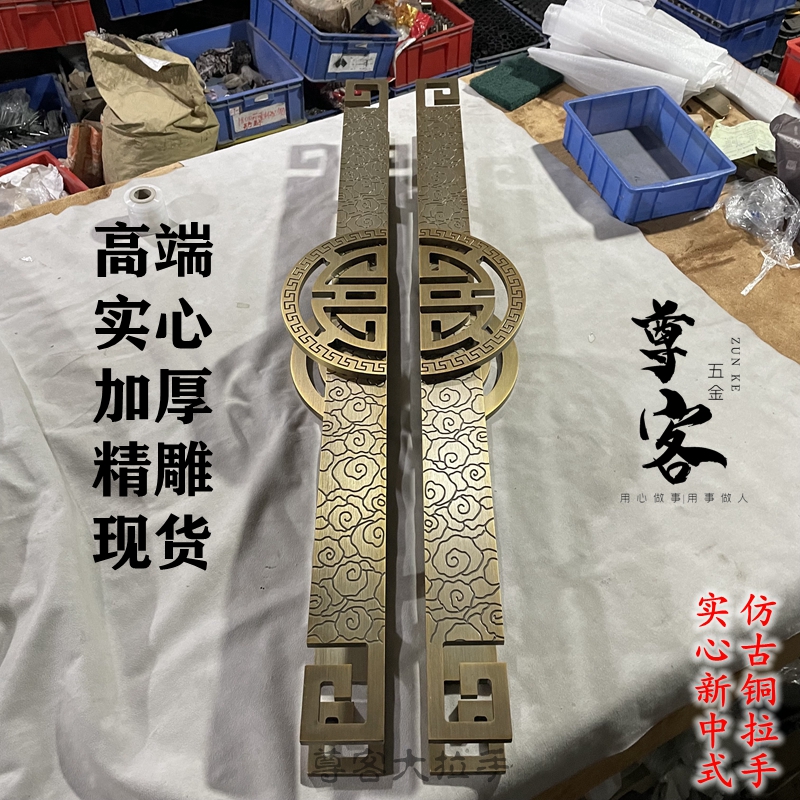 Luxury Chinese Imitation Ancient Xiangyun Modern Luxury Double Switch Glass Door Handle Hotel Wooden Door Large Handle Custom Logo