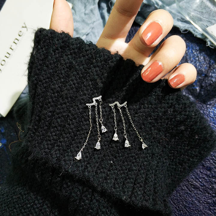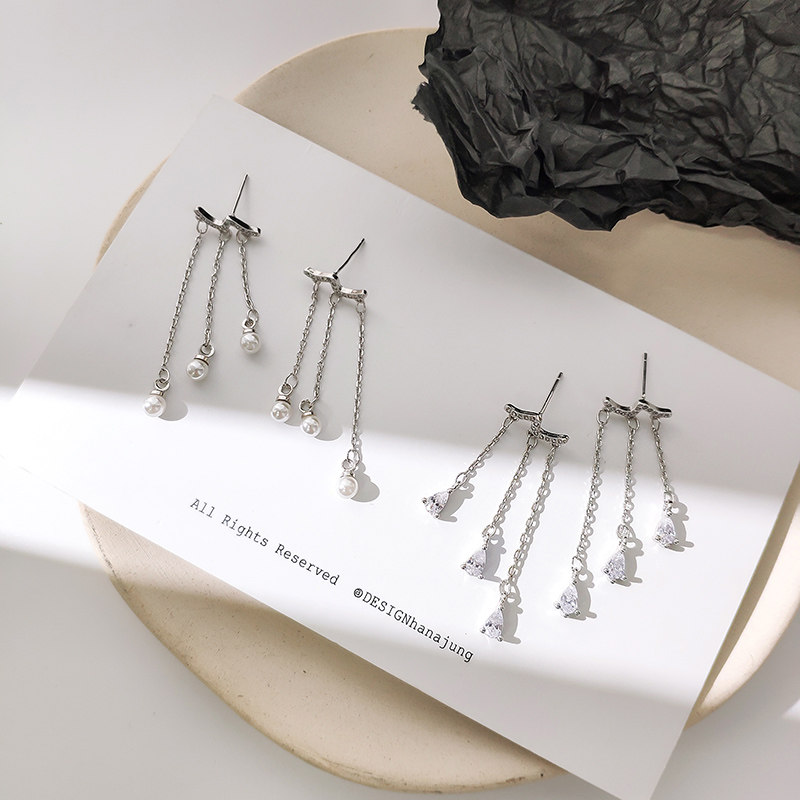 Temperament Korean super fairy long version net red atmospheric face thin atmospheric pearl drop earrings earrings small fairy drop earrings