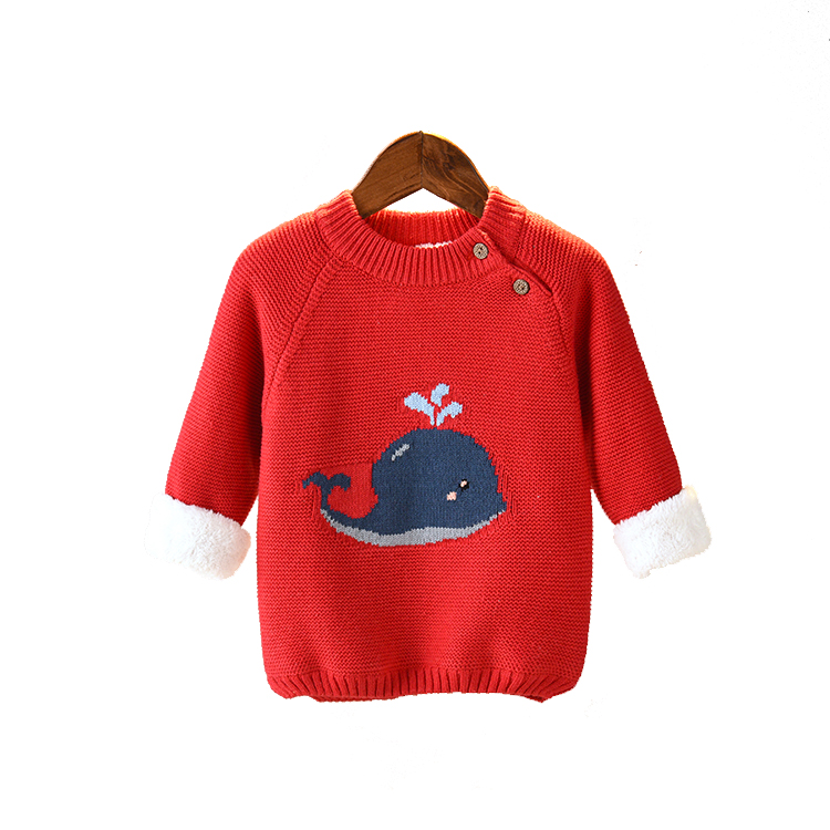 Boys sweater pullover plus velvet thickening girls foreign style children children baby knitted bottoming shirt baby bottoming