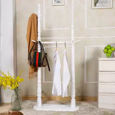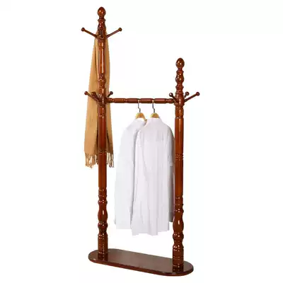 Solid wood coat rack double pole American floor hanger Household bedroom vertical hanger Living room porch European hanger