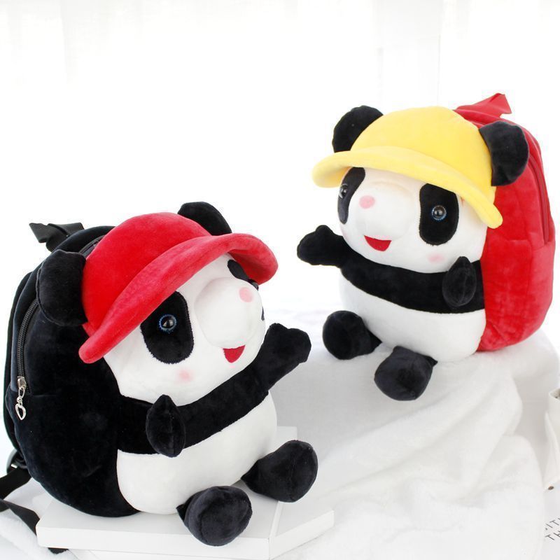 Cartoon Panda Paparazzi Double Shoulder Bag for men and women Children's baby Shoulder Bag Soft Bag Bag Small School Bag Cute Hat Souvenir