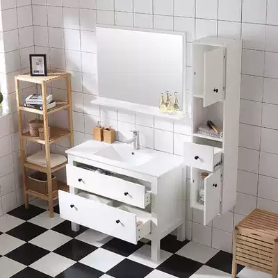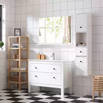 Bathroom cabinet Modern simple solid wood bath cabinet Toilet cabinet washbasin washbasin cabinet combination floor-to-ceiling