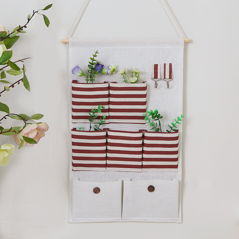 Cotton linen Multi-pocket paper towel containing hanging bag Hanging Pocket Bedroom Living-room Living Room Bag Collection Bag Small Fresh Storage Bag Disposal Bag