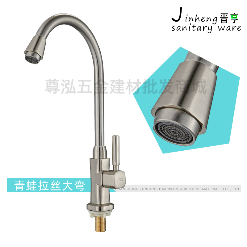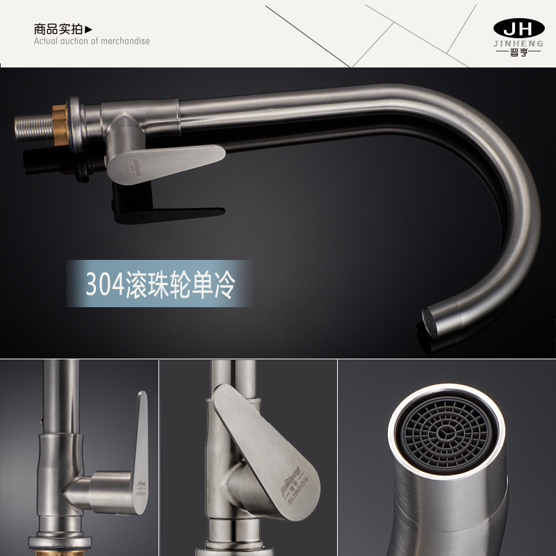Jinde copper standing high 304 ball vertical big bend Guangdong dial Jinhengping tee 304 single cold faucet