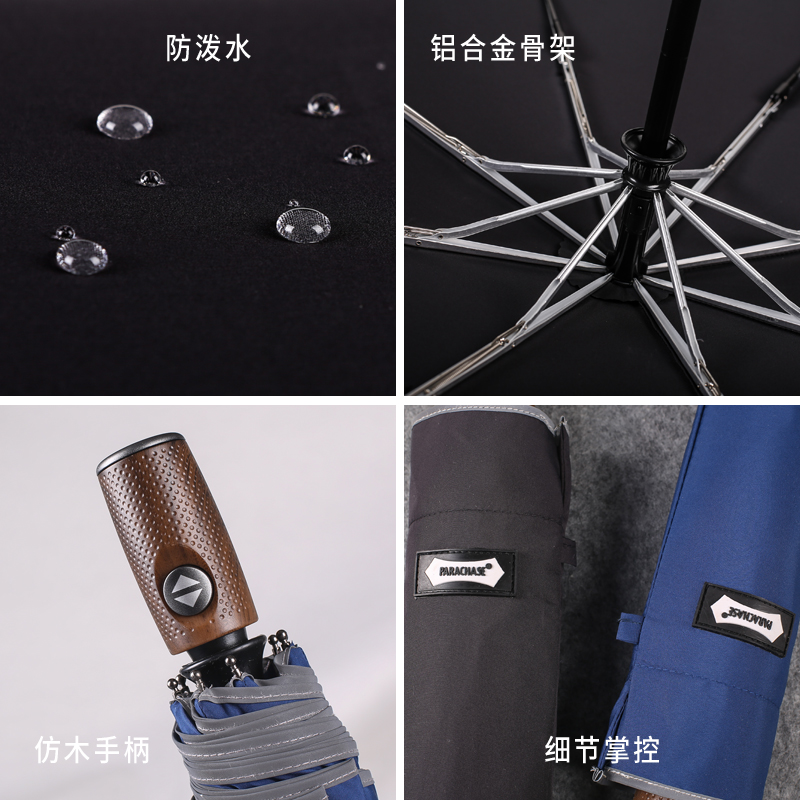 PARACHASE creative personality safety automatic men's and women's three folding water repellent and windproof ultra-light simple umbrella