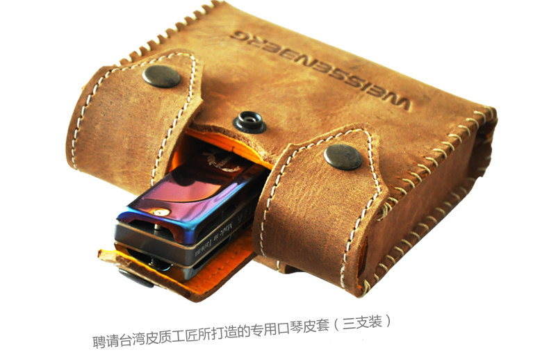 Taiwan imported Wiesenburg handmade pure leather 3-pack harmonica bag 10 ten holes blues Blues special 1003
