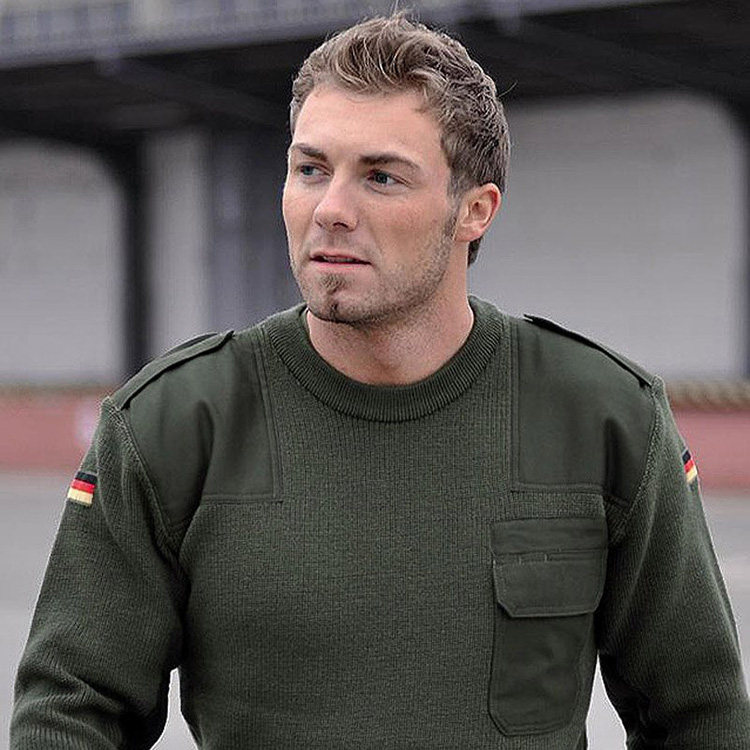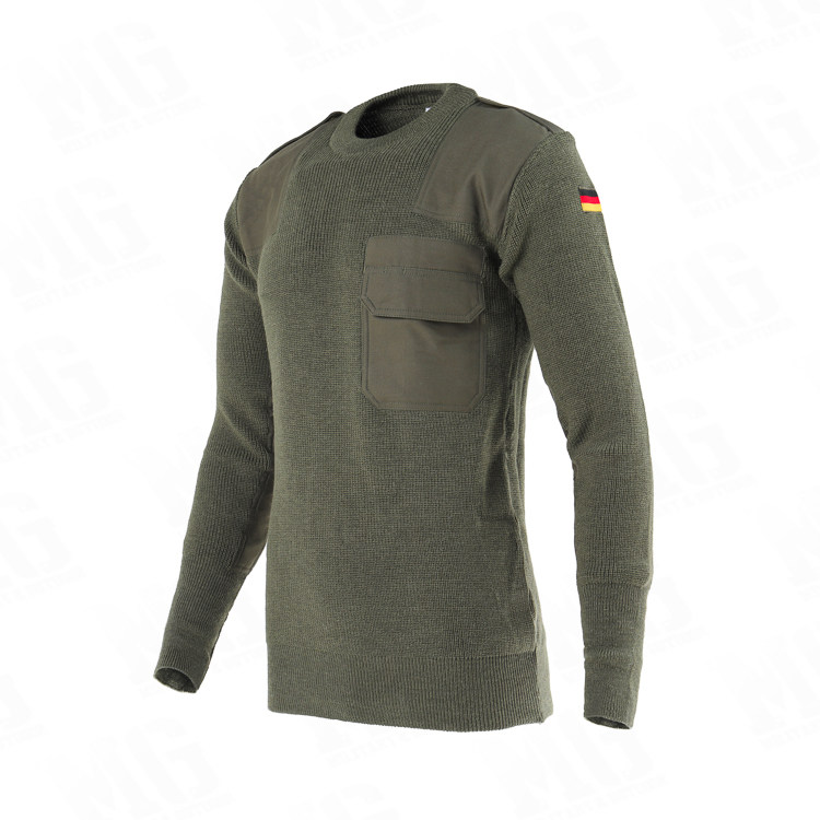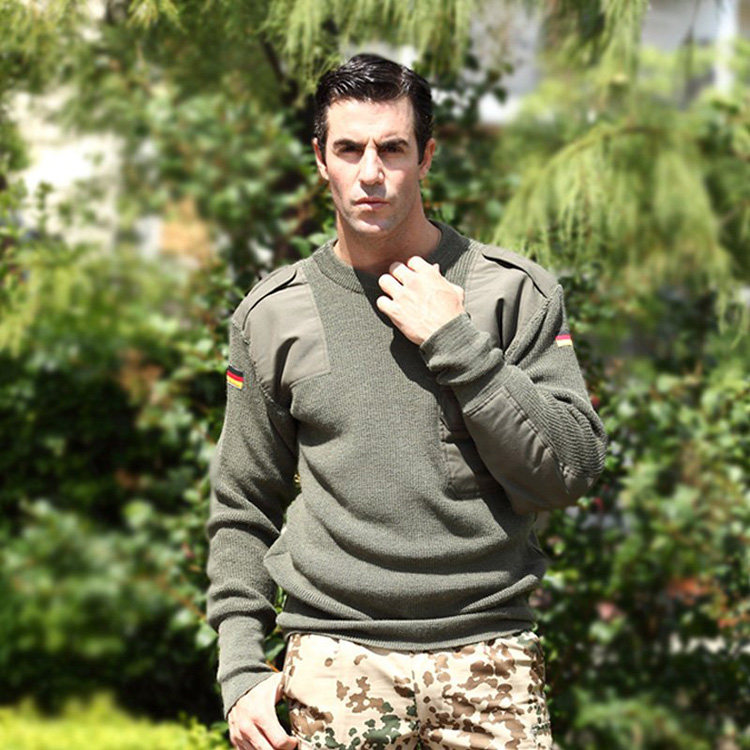 New real German army public hair field crew neck knitted wool sweater Autumn and winter fashion (army green)