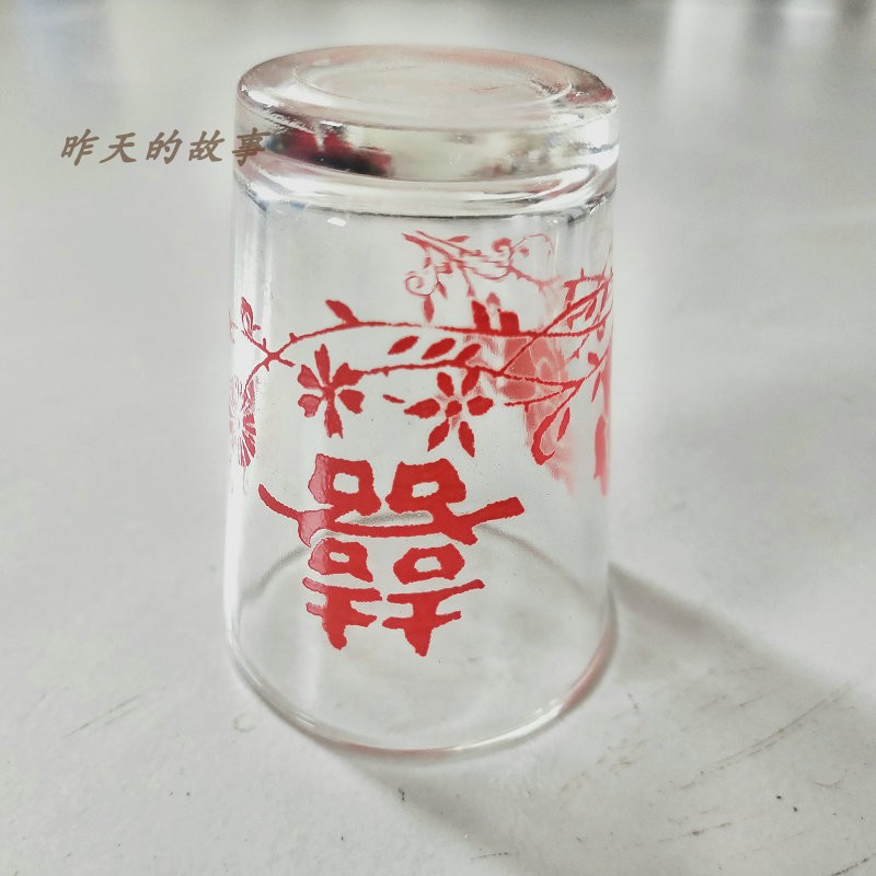 Nostalgic old stock 80-90 s printed happy words one or two small wine glasses