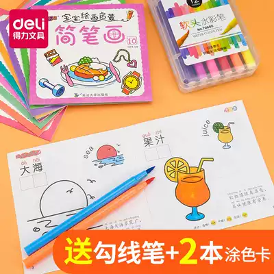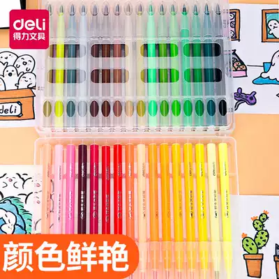 Deli soft head watercolor pen washable non-toxic 48-color painting set children's kindergarten primary school students with color coloring painting brush Art professional baby brush thick head 24-color double head 36-color painting set Children's kindergarten primary school students with color coloring painting brush Art professional baby brush thick head 24-color double head 36-color painting set