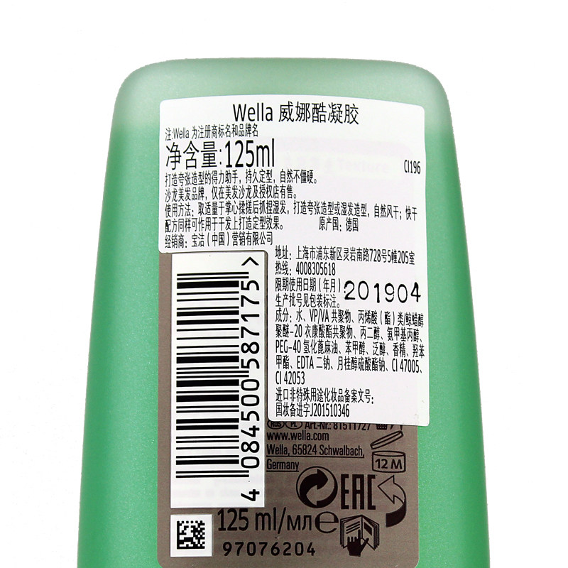 German Wienna Wella Cool Gel 125ml Add Gloss Powerful Styling Oil Head Big Back Head Styling Gel Cream