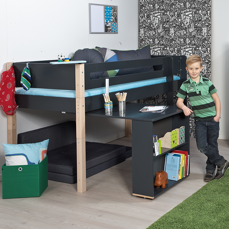 Manneon Manis - h Nordic imported children's beech semi - high bed with desk learning beds versatile