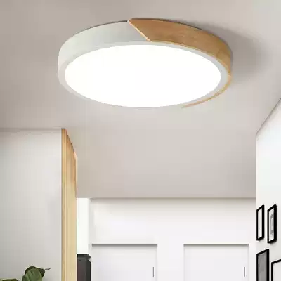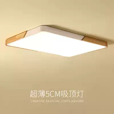Nordic LED ceiling lamp Simple modern living room lamp Rectangular creative wrought iron round bedroom solid wood lamp