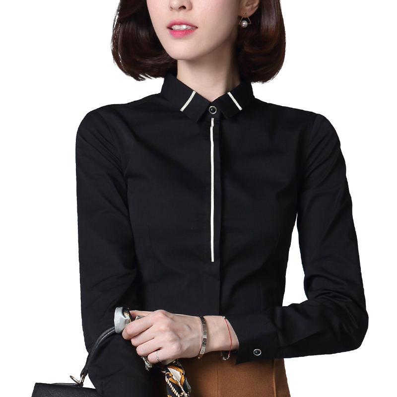 Black Career Shirt Woman Long Sleeve 2022 Autumn Fit New Body Tooling Interview Positive Dress Work Wear White Shirt Woman