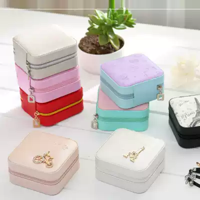 Portable jewelry box European-style travel cosmetic bag Ring ear needle ear clip necklace large-capacity collection box storage box