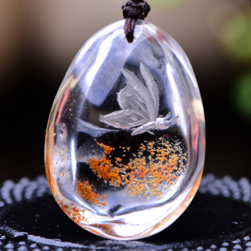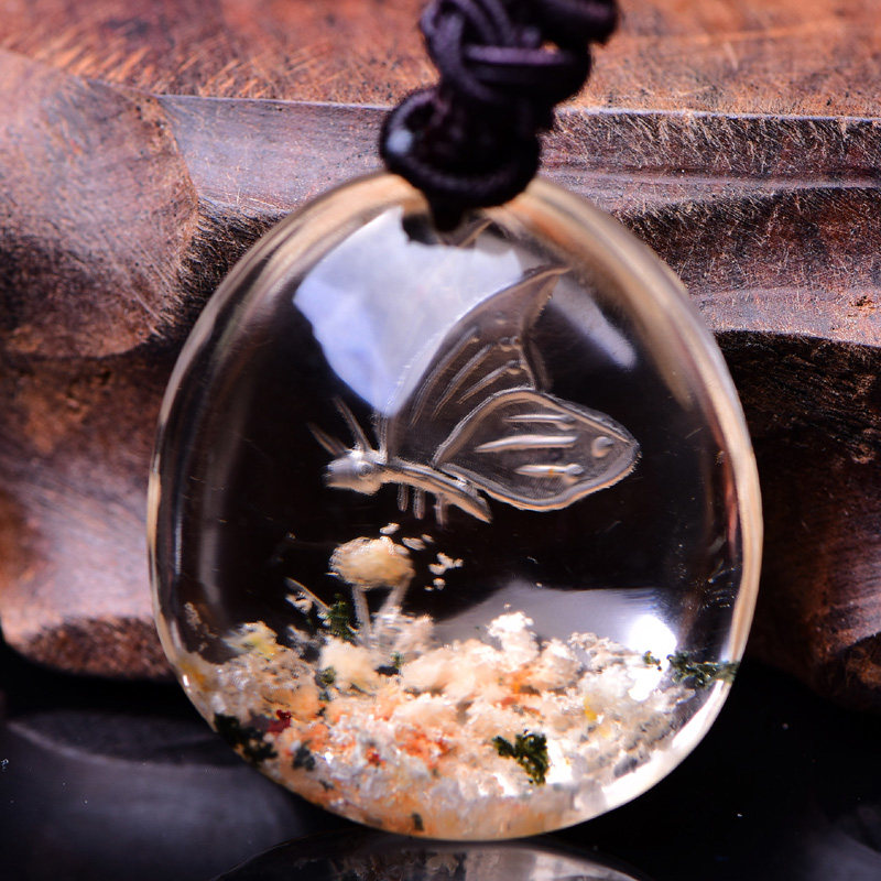 Gift Natural Crystal Color Ghost Poly Basin Inner Carved Butterfly Pendant Happiness Stack of male and female crystal ornaments gifts