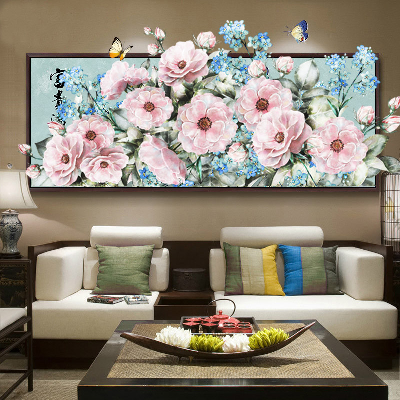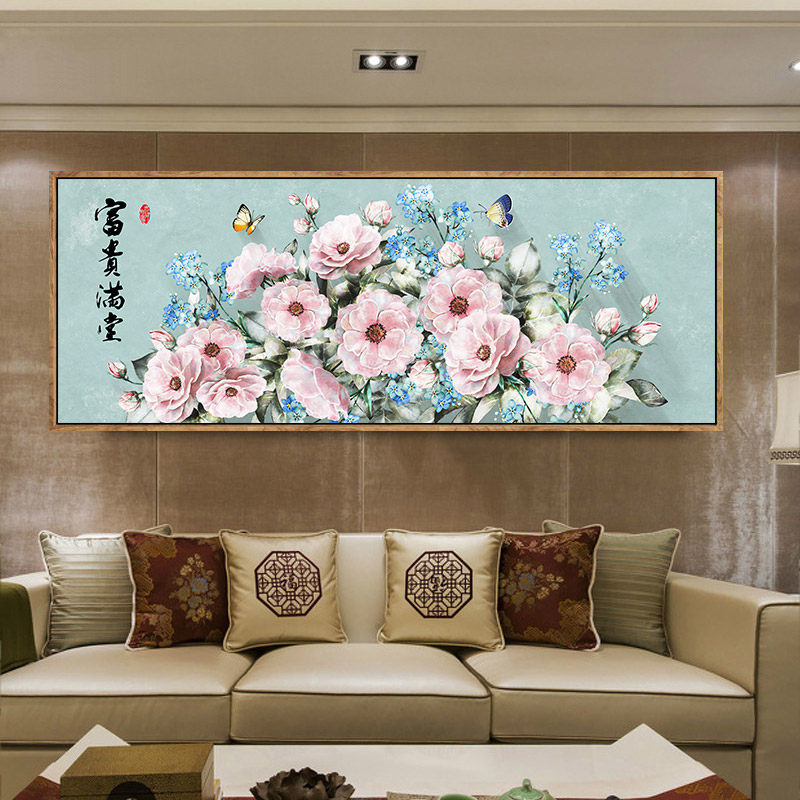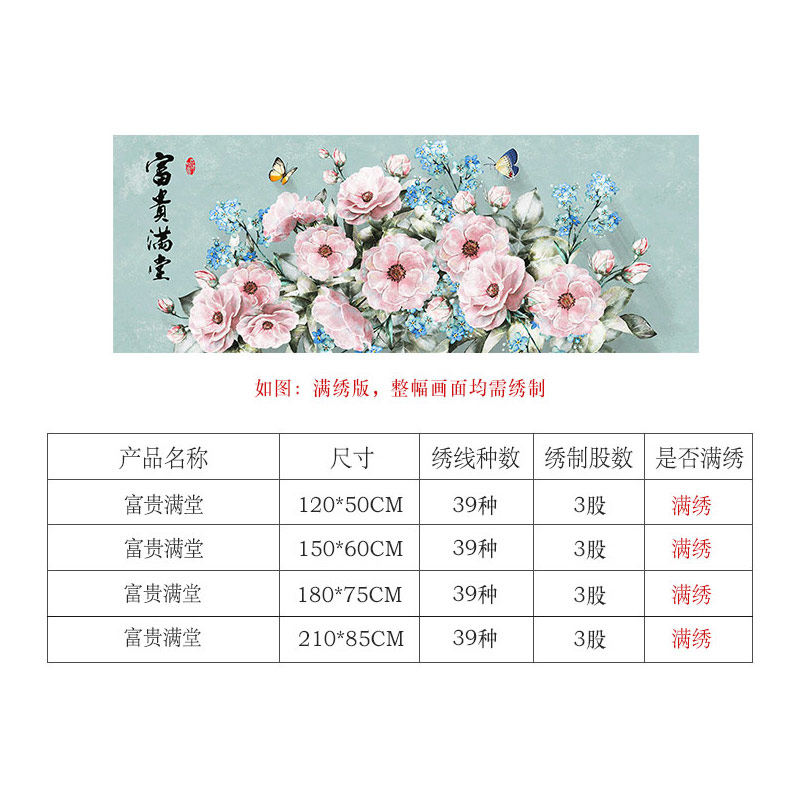2021 New Thread Embroidery Printed Cross Stitch Living Room Large Flowers Full of Riches and Noble Peony Flowers Full Embroidery Thread Embroidery