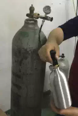 0 45L turn 12G set large bottle over 0 45L bottle tube charging valve pressure reducing valve can refill 12g without snails can refill 12g with 3 8=24UNF screw 0 45L gas