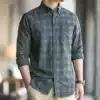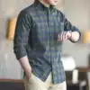Flannel king spring and summer long-sleeved shirt plaid cotton inch shirt men's casual slim-fit flannel inner shirt youth