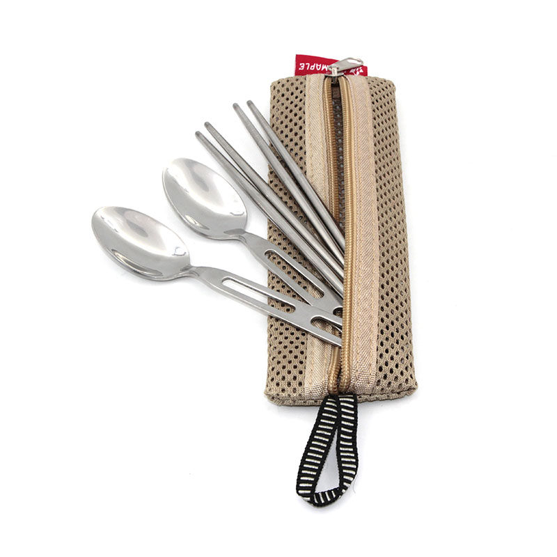 Outdoor stainless steel cutlery set Climbing camping barbecue portable tableware Spoon chopsticks double delivery storage bag