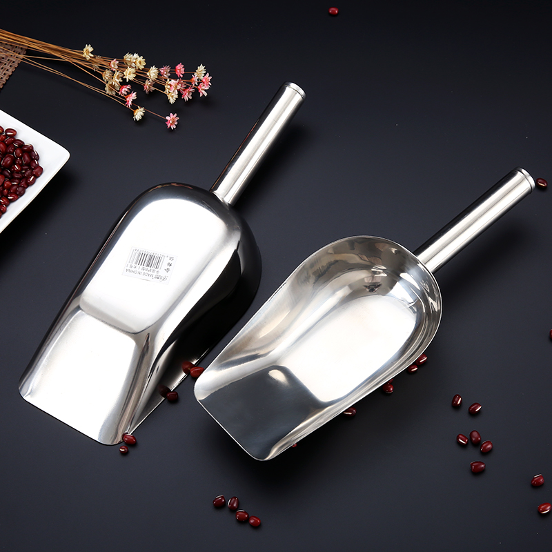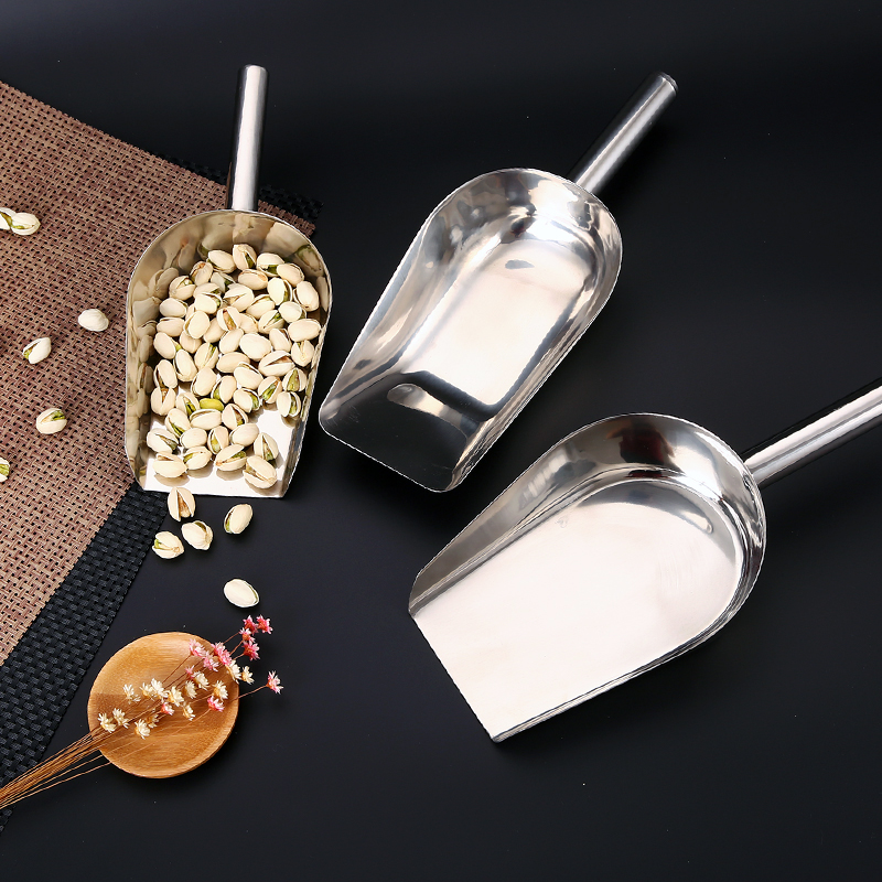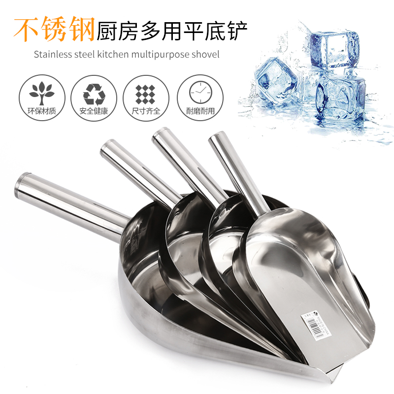 Thickened No-magnetic pure stainless steel flat bottom ice shovel Shovel Extra-large Medium Size Grain Rice Tea Flour Dry Goods