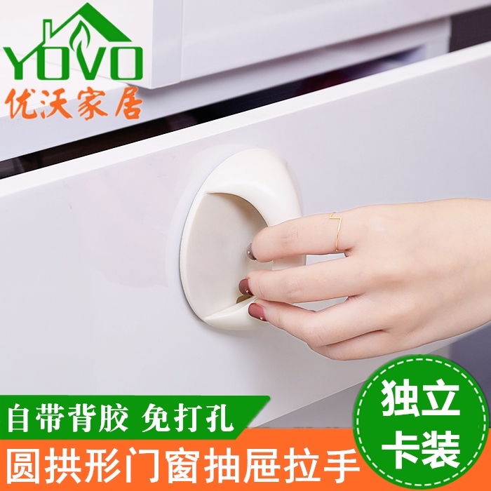 Free-to-punch moving door handle labor-saving round arched drawer small handle adhesive style closet book cabinet door handlebar 2 clothes
