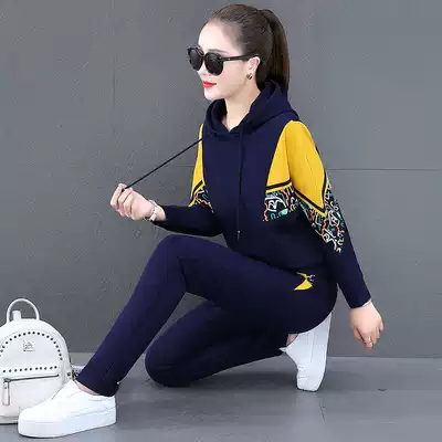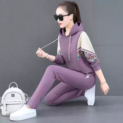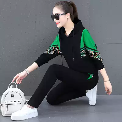Spring and Autumn Set 2021 New Women Fashion Color Cotton Calf Pants Chaoyang Pie Age Reduction Leisure Two Piece Sportswear