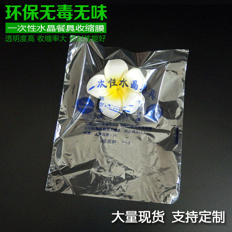 Disposable crystal tableware packing bag pof heat-shrink film Shrink Film Ps Sterilised Tableware Packing Bag